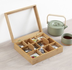 Bin with Compartments, LARGE BAMBOO TEA BOX, 28 x 23 x H 7 cm, Nature