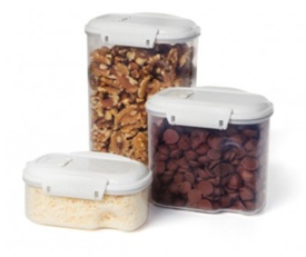 Containers for sprinkles, sugar, etc, 3 Pack, SISTEMA BAKE IT STACK & POUR, Clear / White