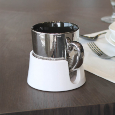 The mug holder's handle creates a strong grip on flat, smooth surfaces such as glass, plastic, laminate and metal. It leaves no residue, can be cleaned and reused, making it both practical and durable. The low centre of gravity prevents drinks from spilling, even in case of accidental spills.Perfect for home and travel