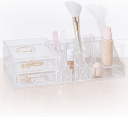 Keep track of your makeup and jewelry in a clear acrylic stand.