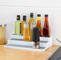 The shelf helps you get a more oragnized storage in medicine cabinets, bathroom cabinets or kitchen cabinets.