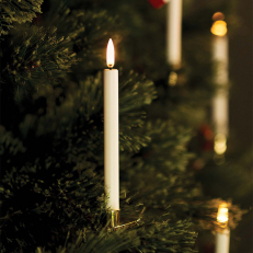 Premium LED Christmas tree candles are the thinnest candles in the popular candle series from Uyuni. The very realistic flames make the candles look real at only a few meters distance, and because the candles and their flames are made of plastic they are safe to use on your Christmas tree.