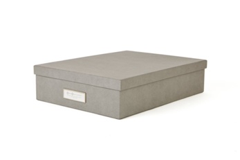 Storage box Oskar from Bigso. Convenient storage that helps to keep order. Perfect size for A4 paper. Stackable with space for label. -