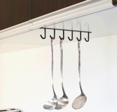 Store kitchen tools under cabinets or shelves to save space. It makes them more easier to access and stores them neatly.