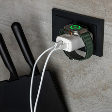In addition to the magnetic charging surface, the wall charger has two ports – one USB-C with 30W power and one USB-A with 18W – which allows you to charge, for example, your iPhone, iPad, or other devices while you charge your Apple Watch. The total power of up to 33W provides fast and stable charging even for more demanding devices. USB cables are not included.GaN technology for higher performance